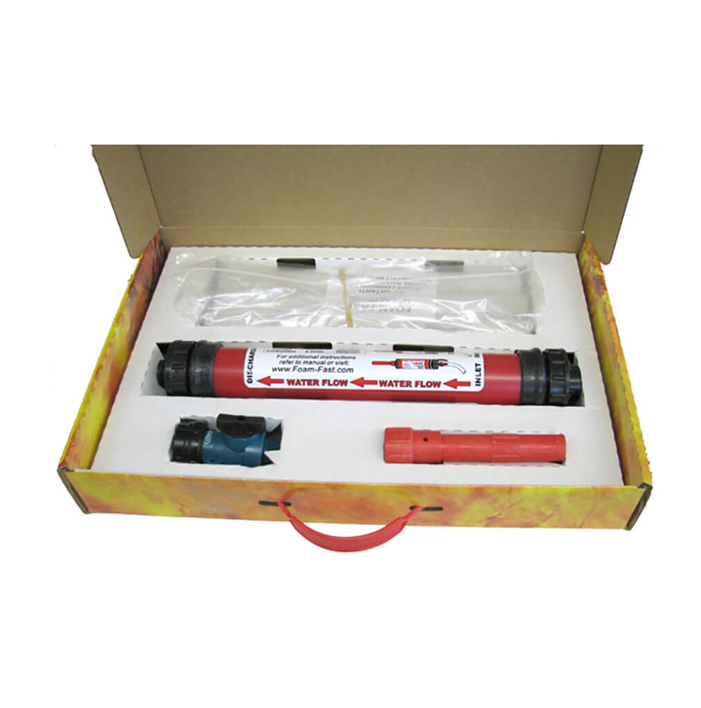 The easiest way to add Class-A foam to your standard garden hose! Inexpensive solid foam cartidges eliminate the need for expensive bulky 5 gallon liquid foam pails. Packaged in a cardboard carrying case with Instruction Manual & DVD w/over 50 minutes of Bonus Educational Videos.