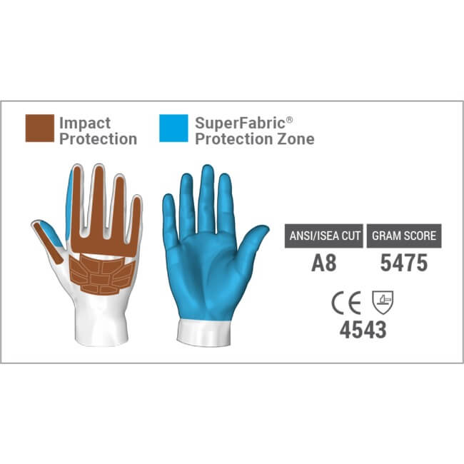 - SuperFabric®* brand material palm provides ANSI/ISEA cut level A8 resistance for some of the highest cut protection available in the industry (interior layer)