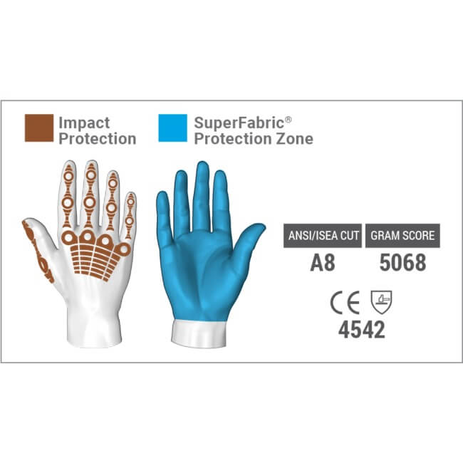 - Interior layer of SuperFabric® brand material in the palm provides ISEA level A8 cut resistance for some of the highest cut-resistance available on in the industry.
