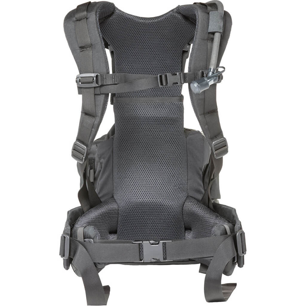 The Fire-specific yoke, featuring our patented Futura system, telescopically adjusts to any torso length and promotes ventilation. The full-length adjuster within the Futura system has a mounted aluminum stay, providing more rigidity. The Fire-specific internal frame consists of a single, vertical fiberglass rod against an HDPE frame sheet. Together, these create a full-length, stiffened body panel that transfers the weight into the wings of the waist belt.