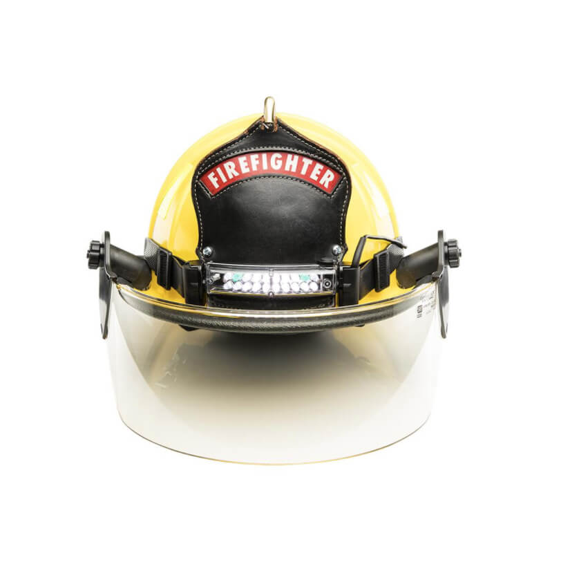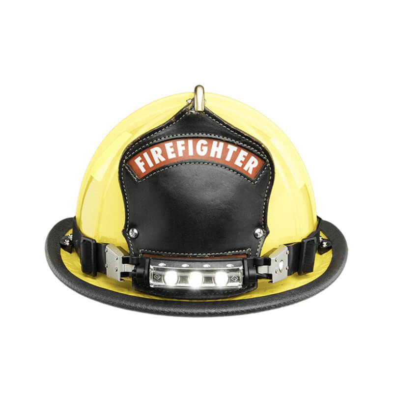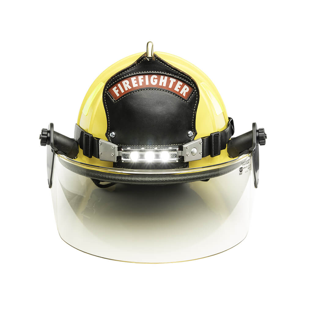 - Lightweight, compact, low profile design easily attaches/detaches above or below brim on traditional and modern style fire helmets, industrial helmets, and hard hats